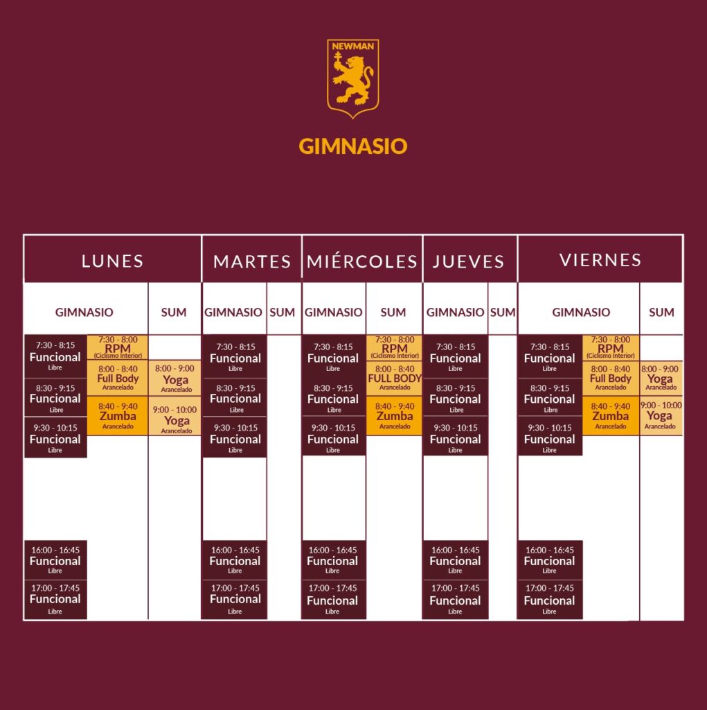 Días y horarios de las actividades del gimnasio