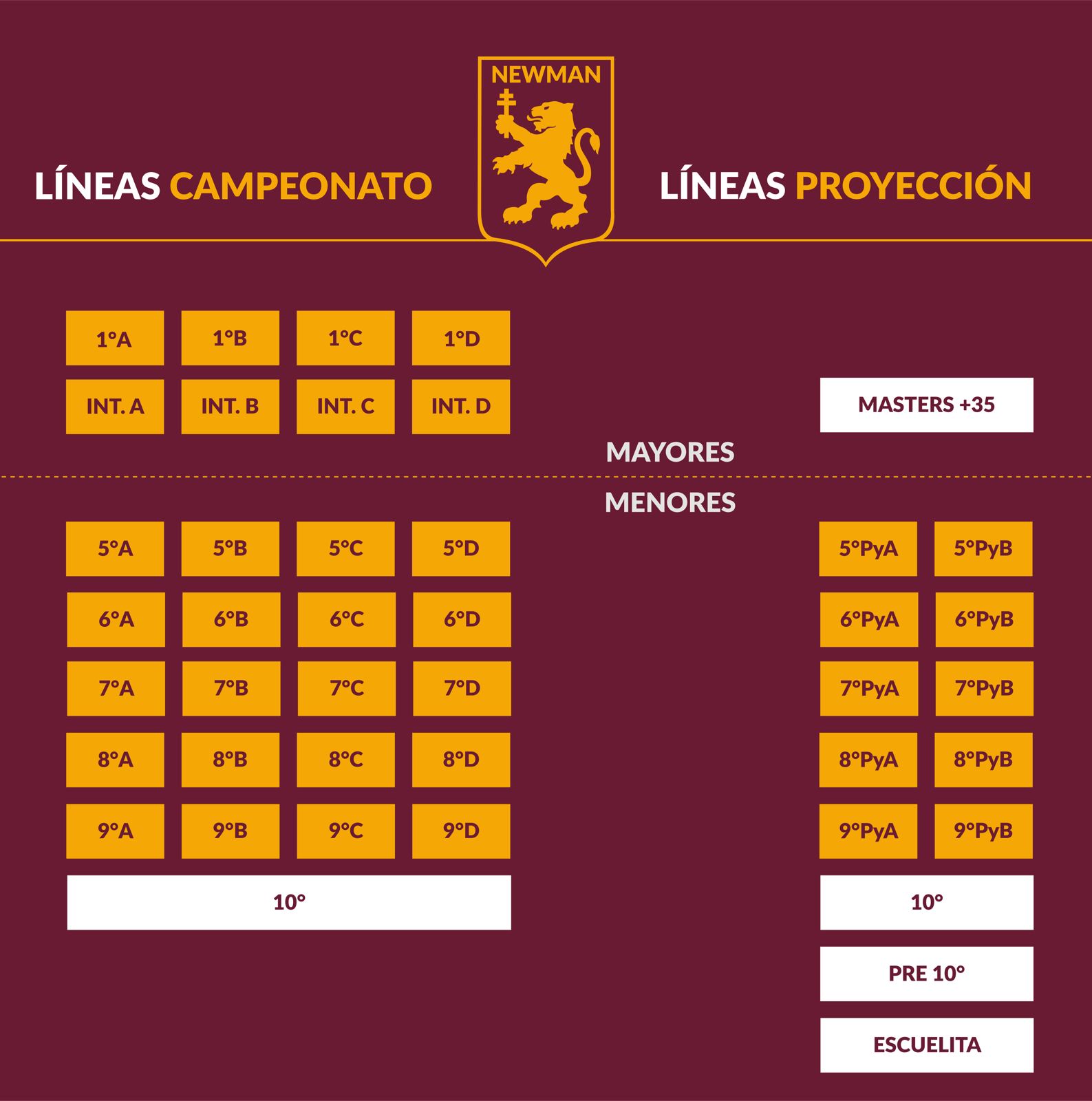 2026: en su 40° aniversario, apertura de NEWMAN D, cuarta línea con campeonato completo de 1ª a 9ª división, que comienza a competir en la categoría G de la AHBA.
