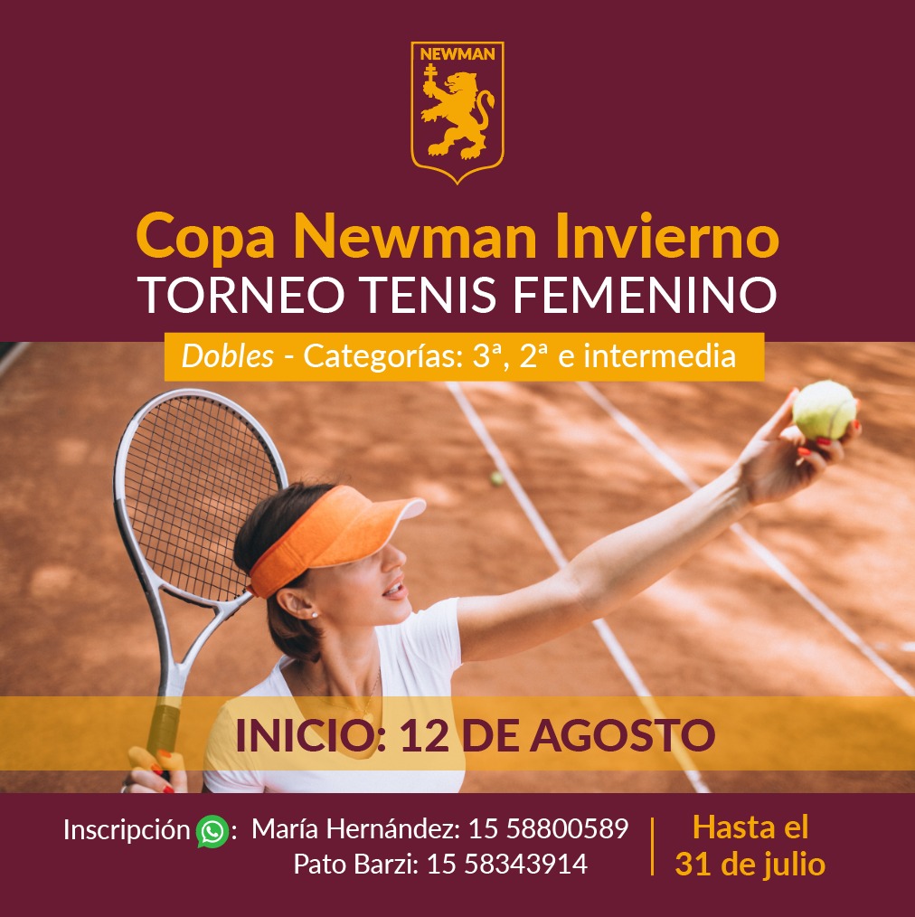 Invitamos a todas las socias a sumarse a la Copa Newman Invierno 2023 que inicia el 12 de agosto y se jugará durante ese mes y septiembre en modalidad dobles de las categorías 3a, 2a e intermedia.